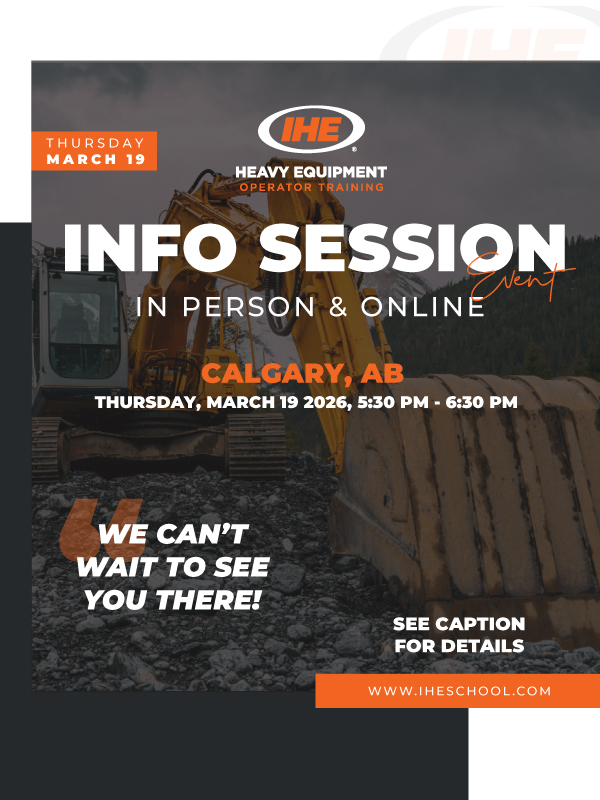 Thursday, March 19 5:30pm - 6:30pm Attend In Person or Join Online Thinking about a career in Heavy Equipment Operations? Learn how IHE prepares students for real employment opportunities in a high-demand industry.